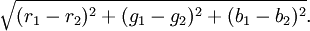 SqrDist := Sqrt(SQR(R1 - R2) + SQR(G1 - G2) + SQR(B1 - B2));