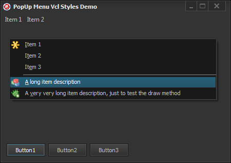 - The TPopupActionBar component has full support for Vcl Styles