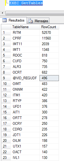 'SELECT  so.name [TableName],MAX(si.rows) [RowCount] '+