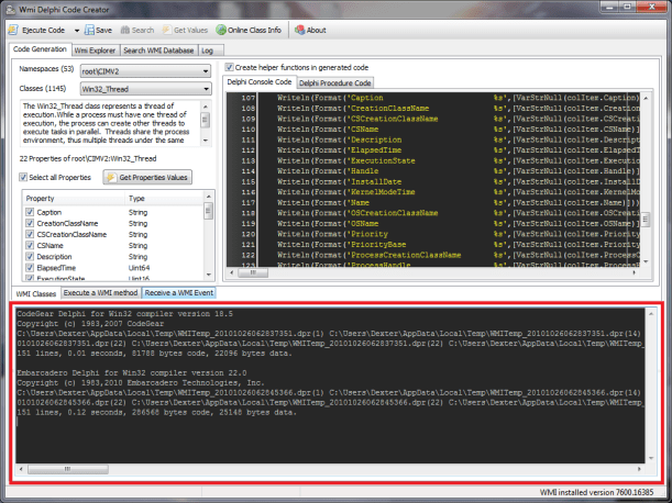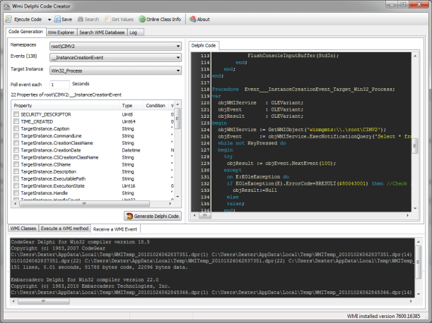 So now you don’t have excuses to don’t use the WMI for pascal code. And remember which you have the WMI Delphi Code creator to help you.;)