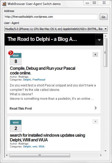 As you can see the content is designed to fit with a mobile device. in this post I will show how you can change the user agent of a TWebBrowser component.