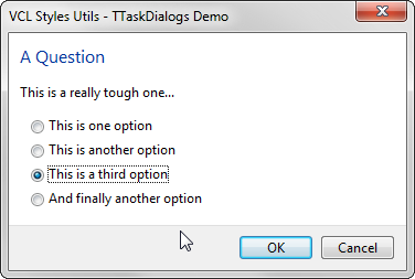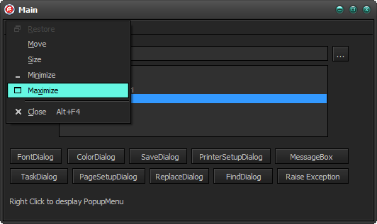Two missing parts of the standard VCL Styles is the lack of the capacity to theme the popup menus and the standard Windows dialogs. I started to work a year ago in the dialogs area, but due to my limited time I was not able to finish that. But a few months ago I receive a very interesting mail from Mahdi Safsafi (SMP3) that show me his own work on this topic. So we decided merge the code of his project and the VCL Styles Utils. So finally the VCL Styles Utils project was updated to support standard dialogs, popup and system menus.